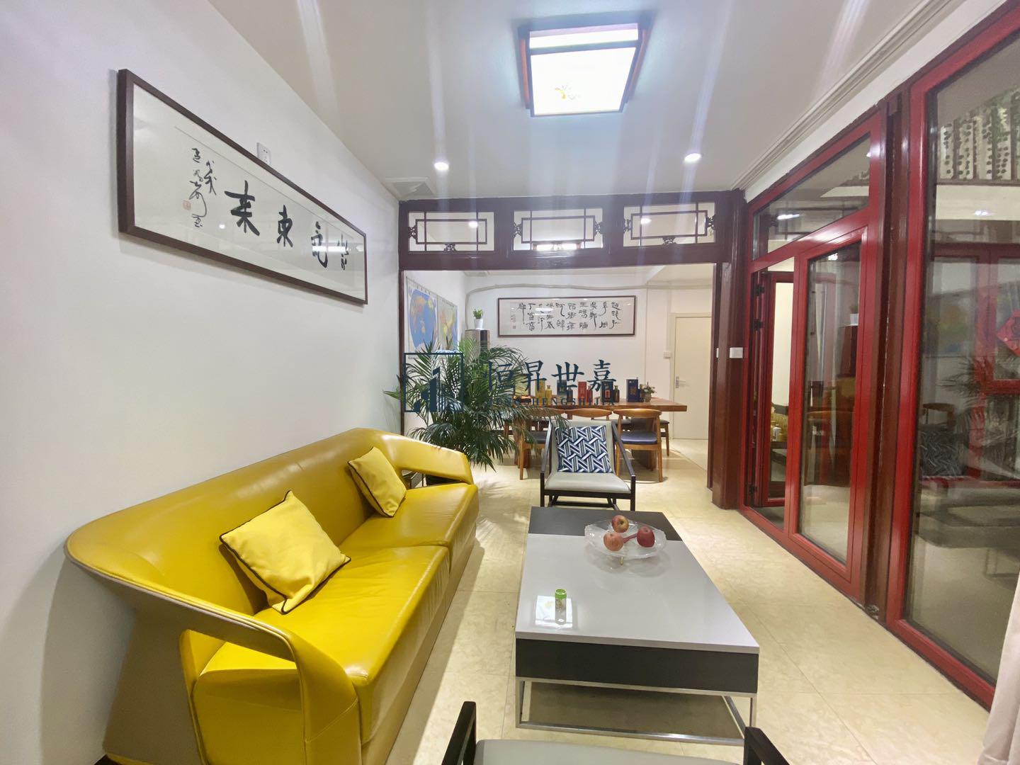 年租90万,南锣鼓巷什刹海四合院出租,占地210平米左右,建筑面积260平米左右,上下两层,独立厨房,独立办公接待区,独立卧室卫浴,门口可停车。精装修,拎包入住。临什刹海地铁站,走路3分钟,看房提前预约