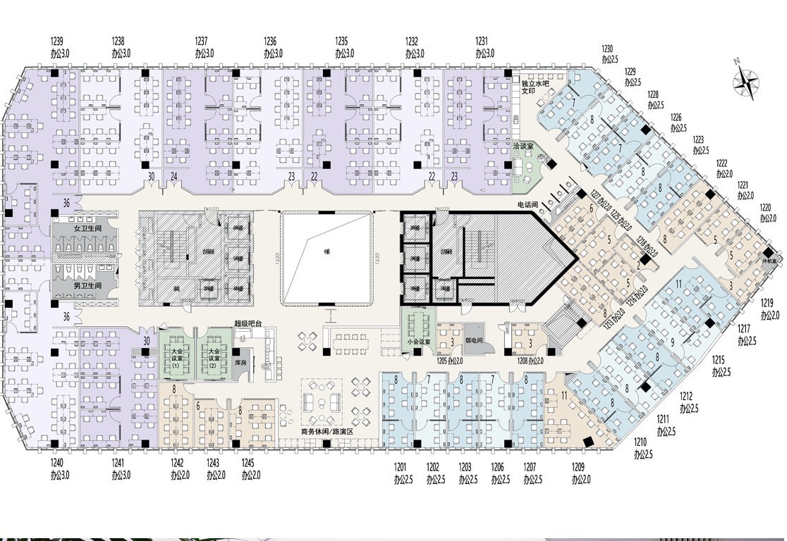 【配套】:24小时水电网,咖啡吧,室内景观,超级前台,保安保洁,高速网络,文印服务,室内景观,会议室,路演厅,智能硬件设备,视频会议系统,线上办公平台,资源共享平台【优势】:精致景观小户型、高级私密洽谈间、电话间