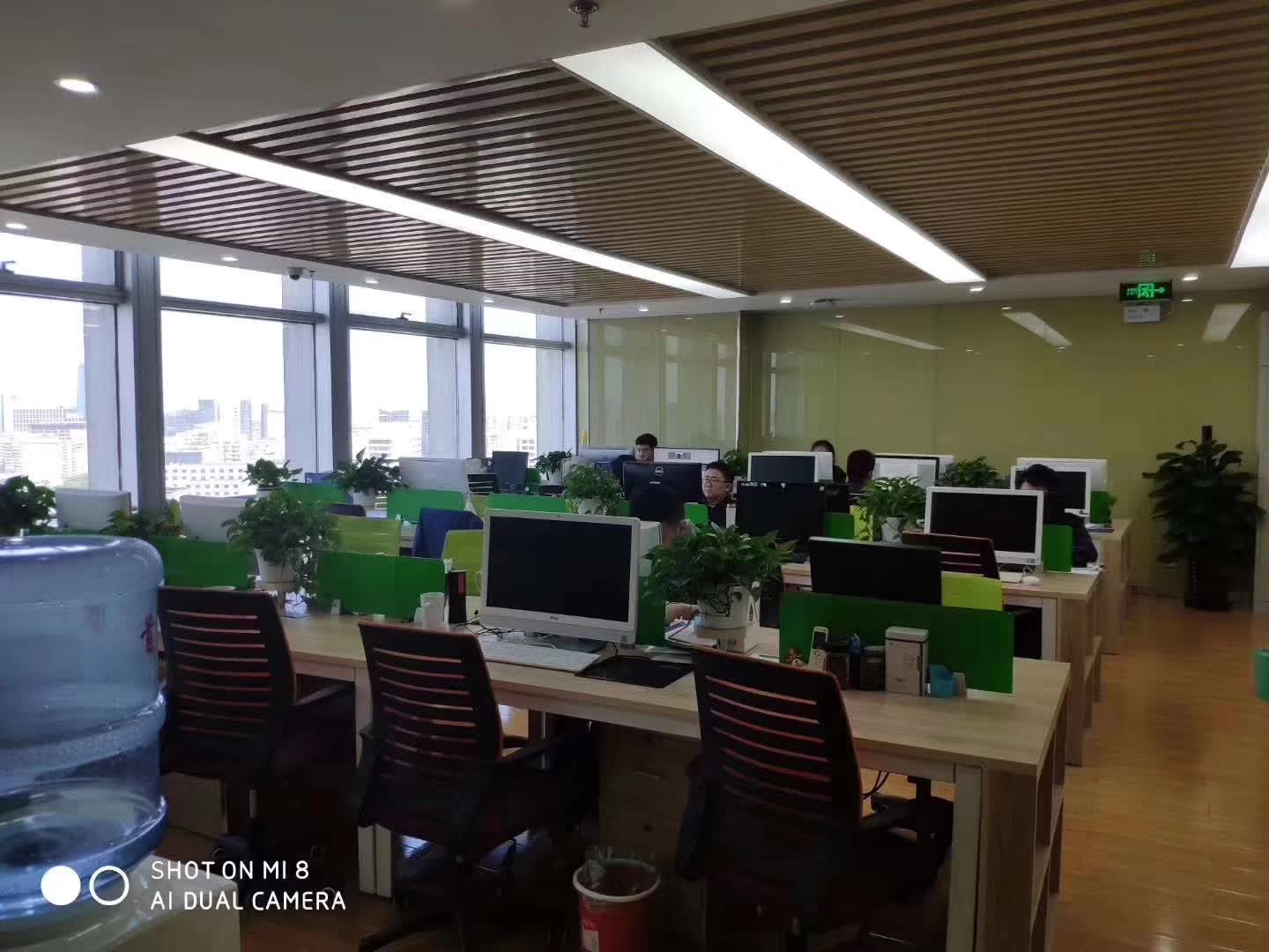 格局户型:西向落地窗,一个会议室(20人),一个老板间,一个财务室,一个经理室,一个机房,公区现有工位数量70个