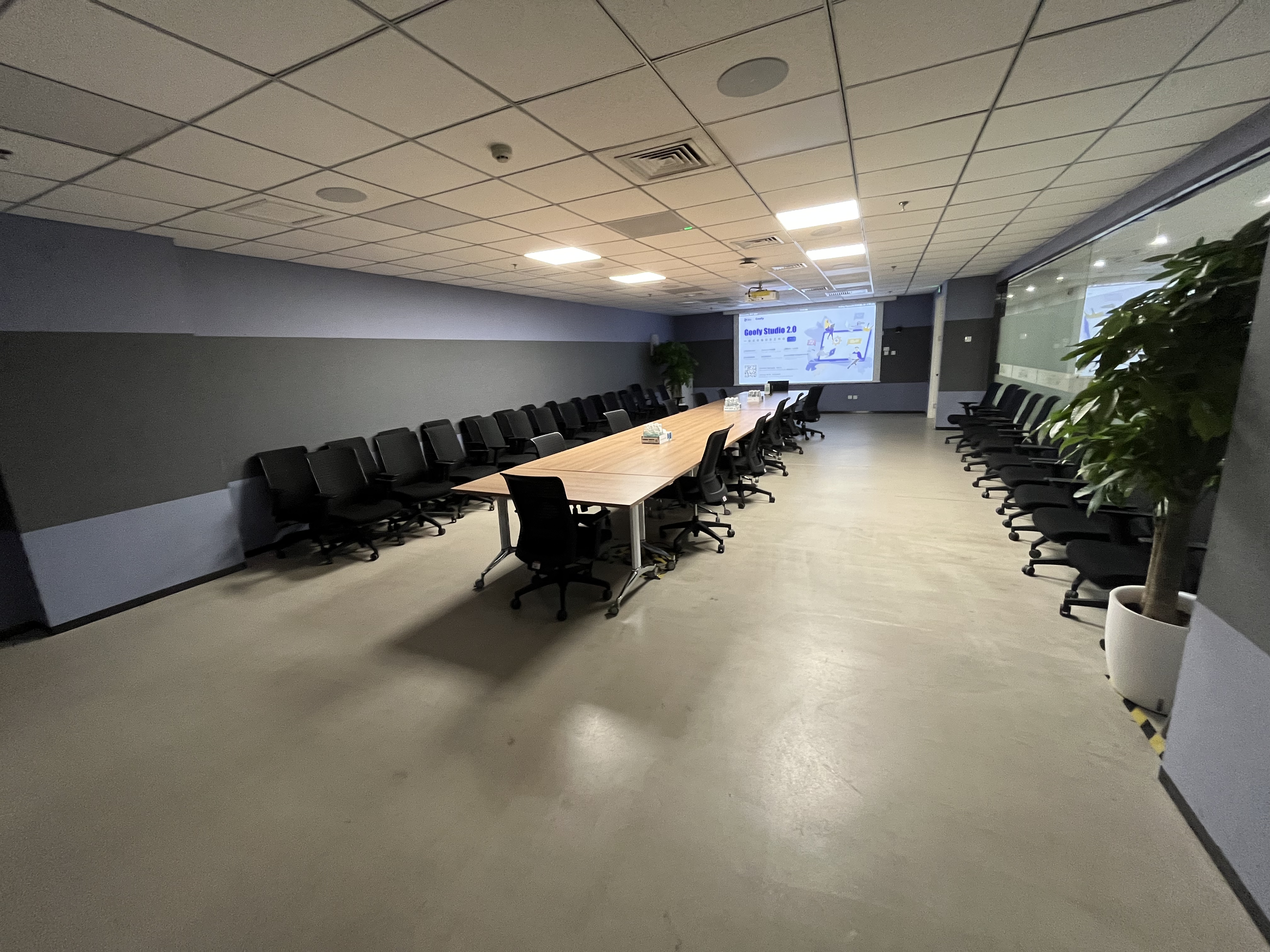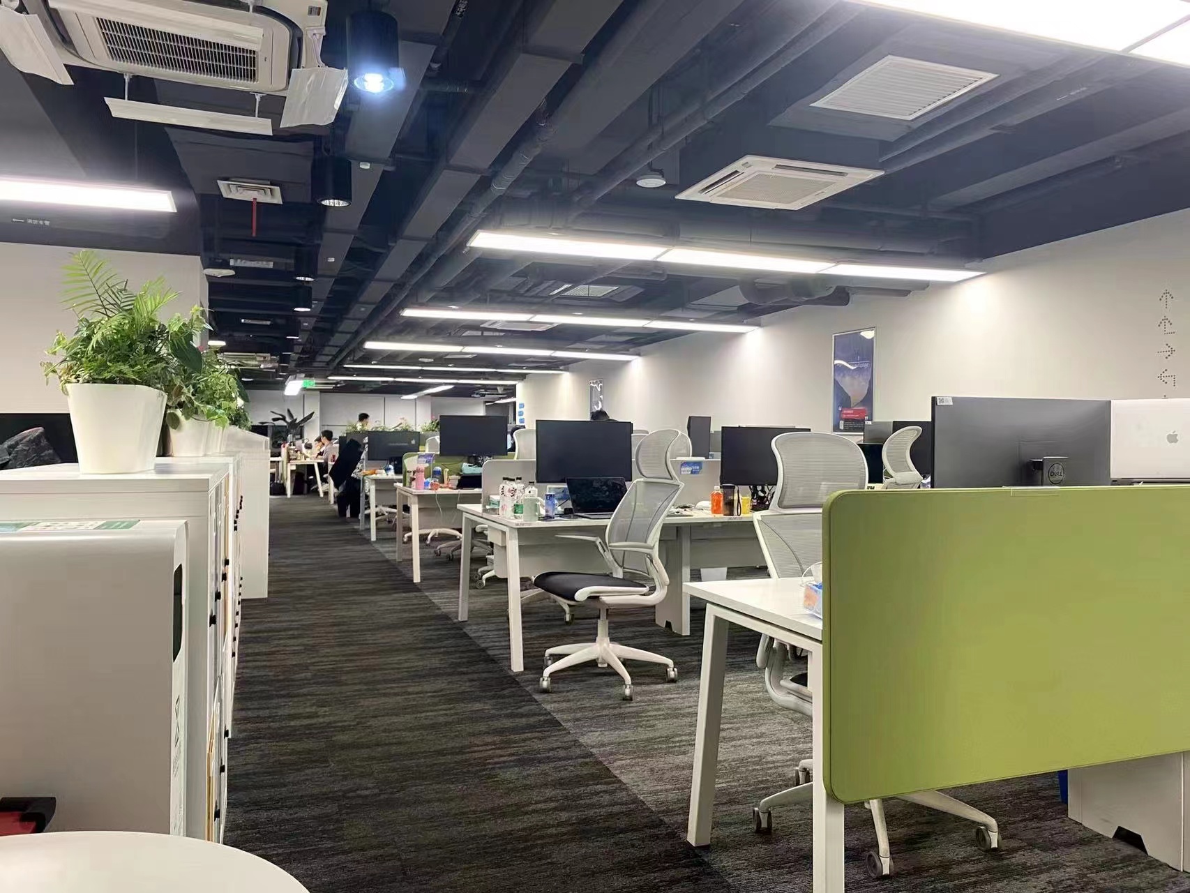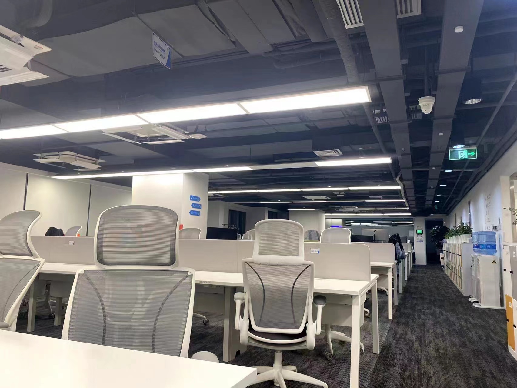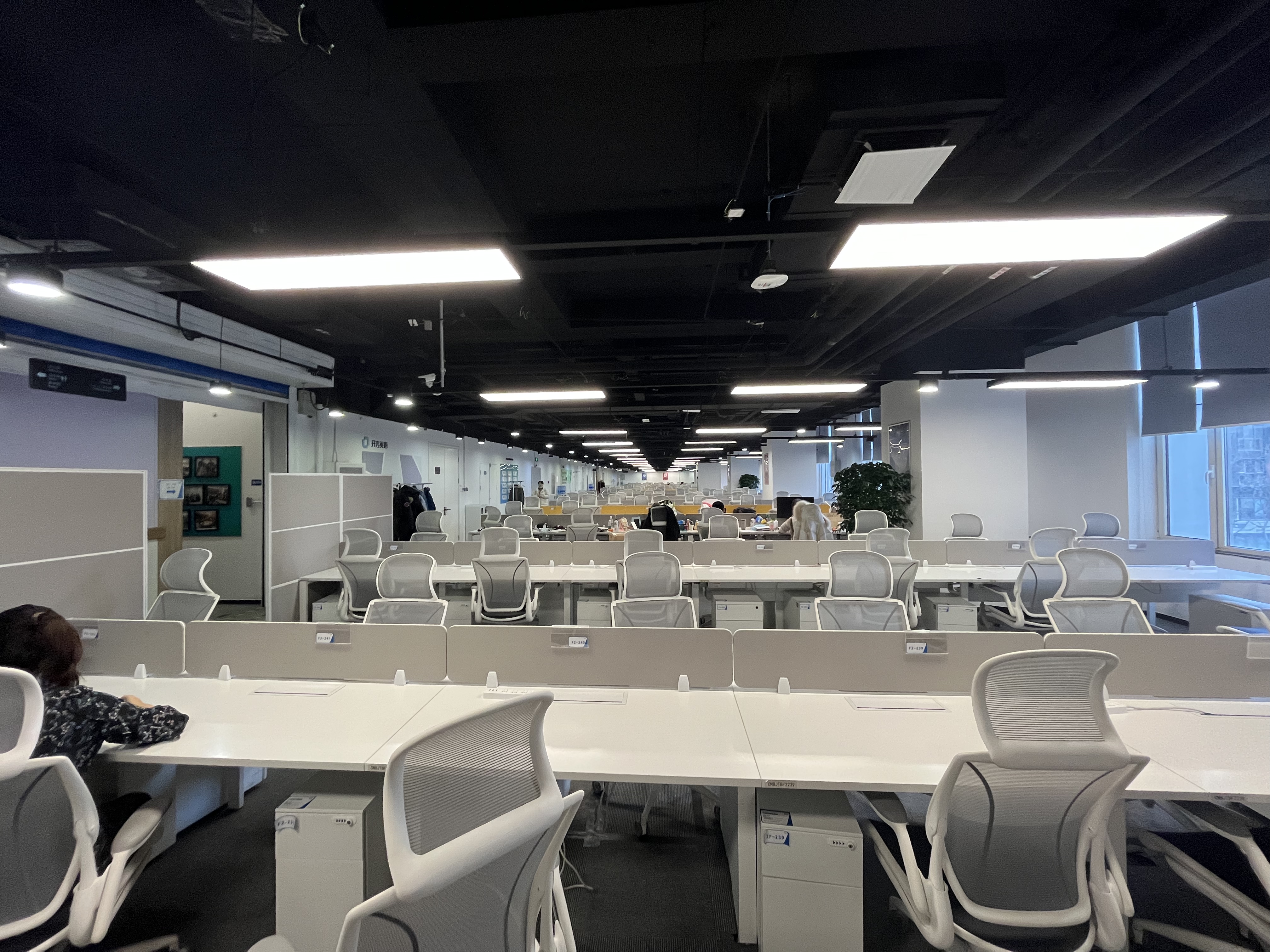 格局户型:西向落地窗,一个会议室(20人),一个老板间,一个财务室,一个经理室,一个机房,公区现有工位数量70个