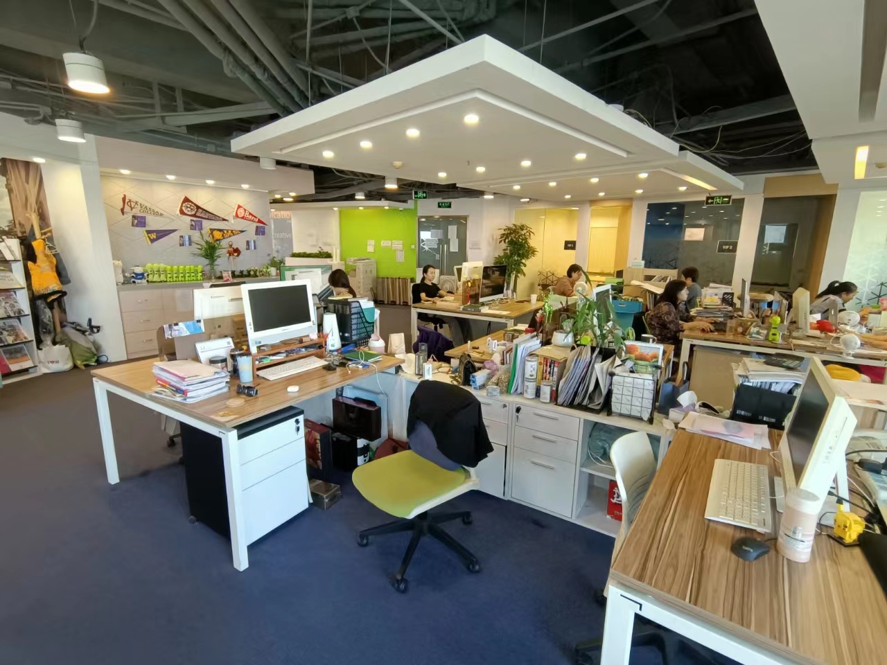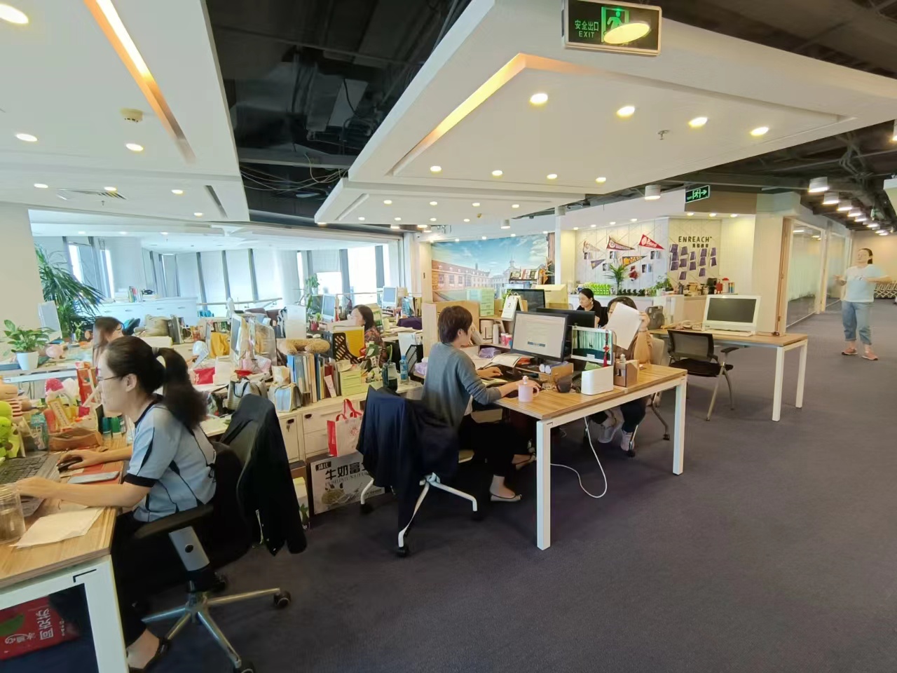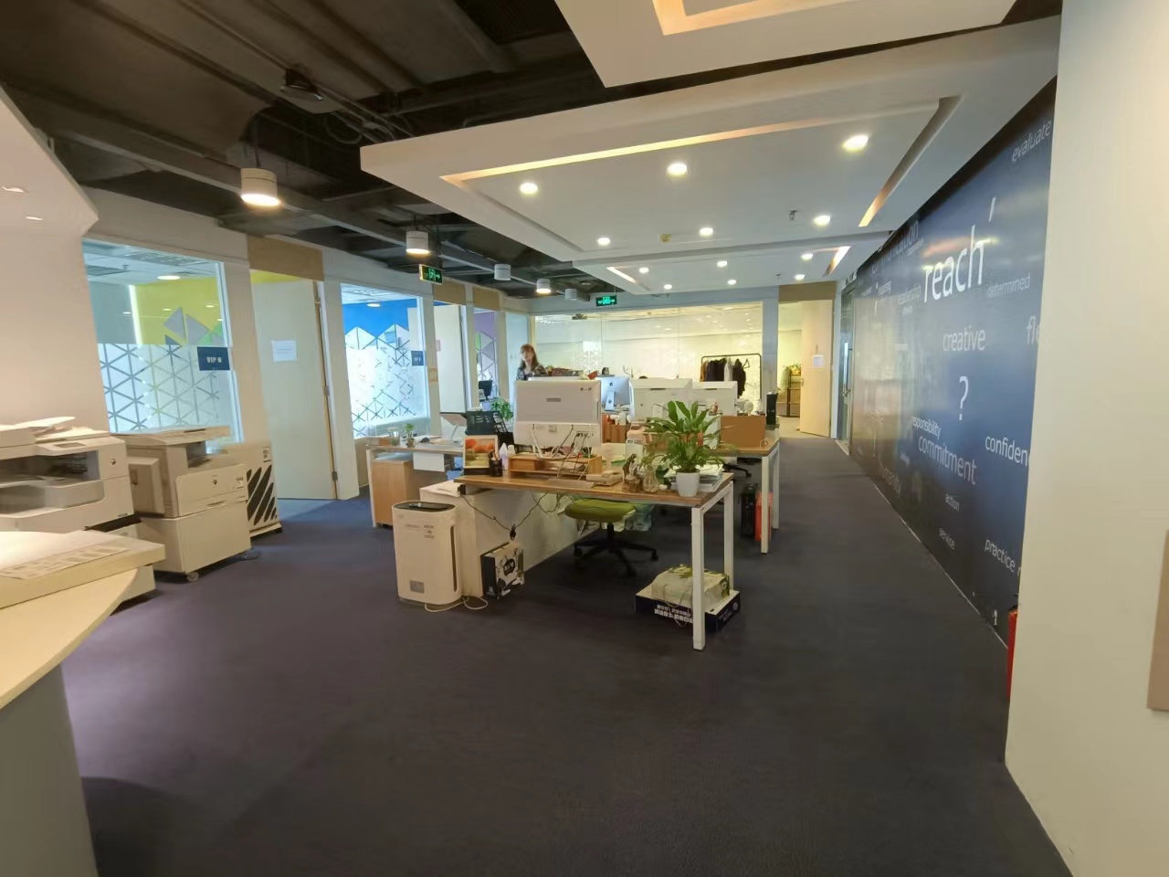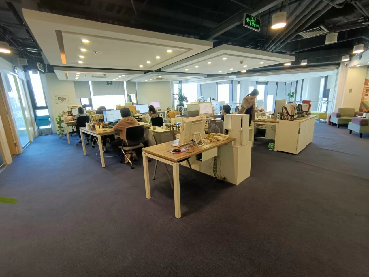 格局户型:落地窗,2个会议室(20人),2个老板间,2个财务室,2个经理室,2个机房,公区现有工位数量170个