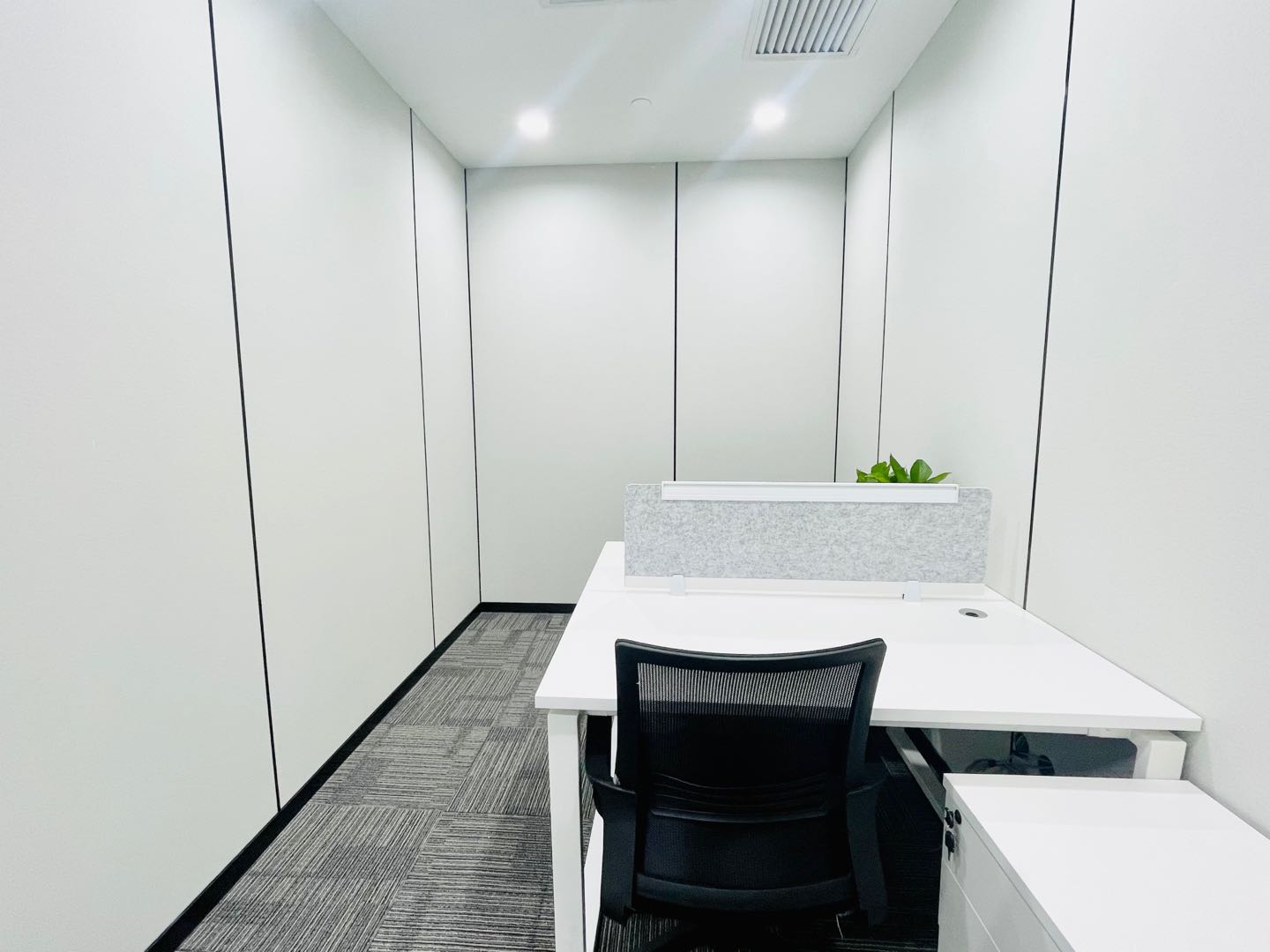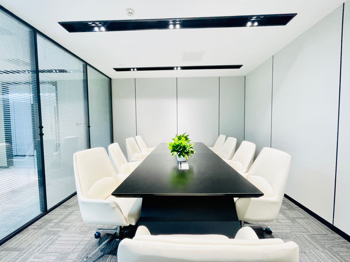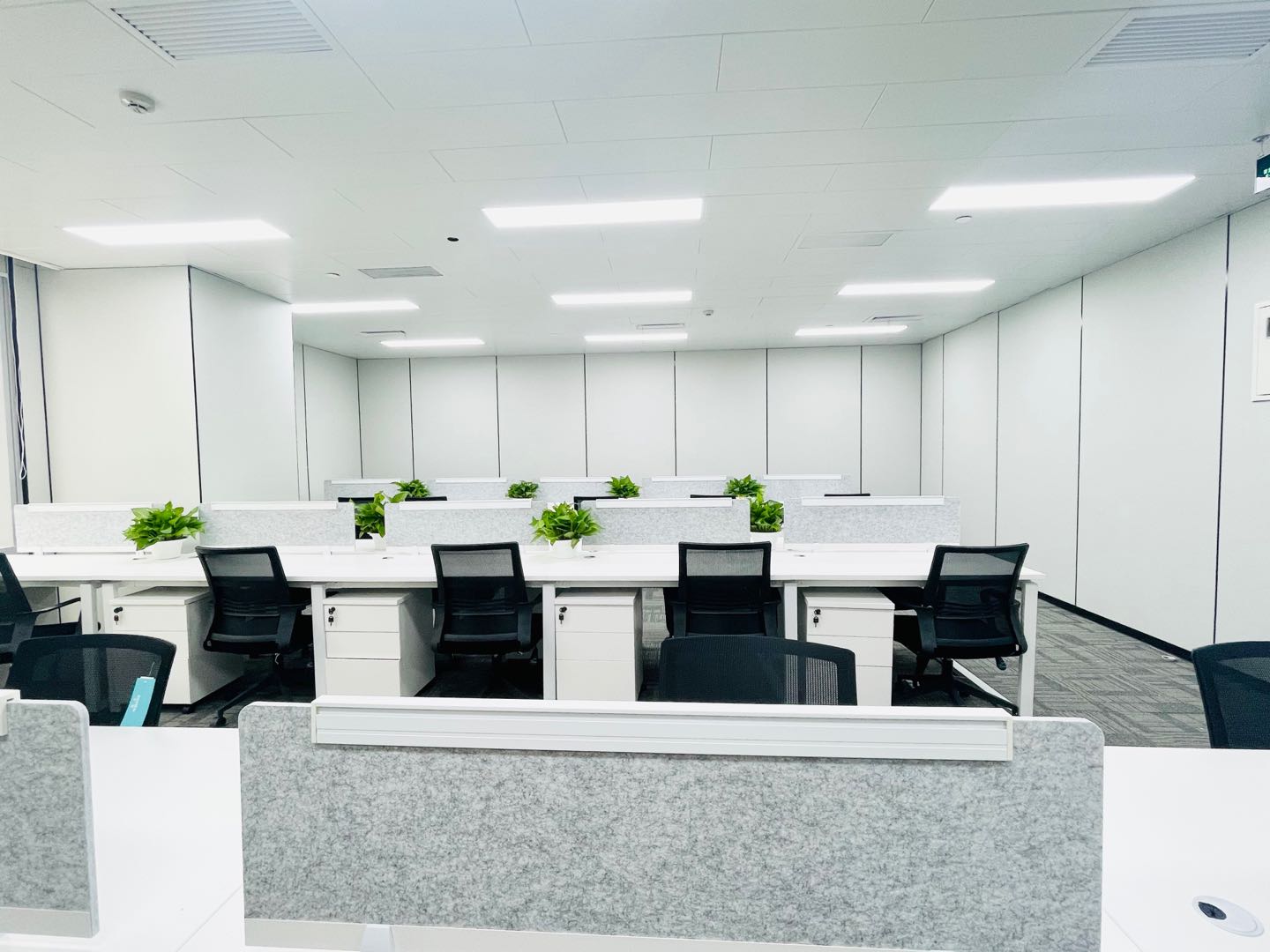 内部格局: 25-30人工位区、【2个老板间、3个经理室、1个会议室、1个会客区】7个到顶隔断,工区宽敞明亮。